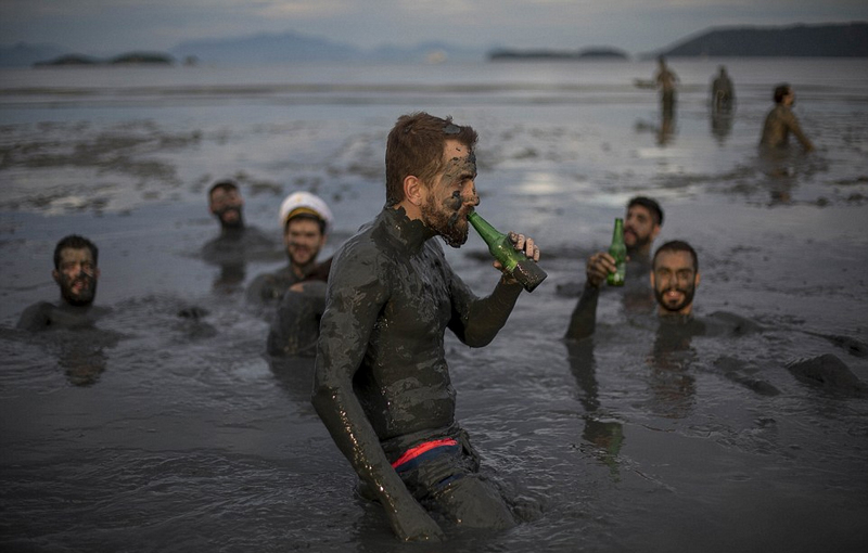 巴西一年一度的狂歡節于2月25日拉開帷幕,將持續5天。近日,巴西各地歡樂氣氛升溫,各自用不同的方式慶祝狂歡節。狂歡節的第一天,在巴西一個位于里約熱內盧和圣保羅之間的小鎮帕拉蒂(Paraty),來自各地的狂歡者身穿泳裝涌入這個海濱小鎮,縱身黑色的、富含礦物質的泥漿,全身涂滿泥巴,以此慶祝狂歡節。