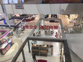 同一天中午,《環球時報》駐天津特約記者來到位于天津河西區文化中心的樂天百貨。與北京、沈陽的情況類似,前來這家商場購物的顧客十分稀少,連平時熱鬧非凡的化妝品柜臺也沒什么顧客。記者在探訪中發現,這里也是走到哪兒都有保安人員在身后“陪伴”。