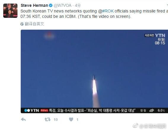 據推測,該飛行物疑似導彈。今天代號為“鷂鷹”的韓美聯合軍演進入第六天。