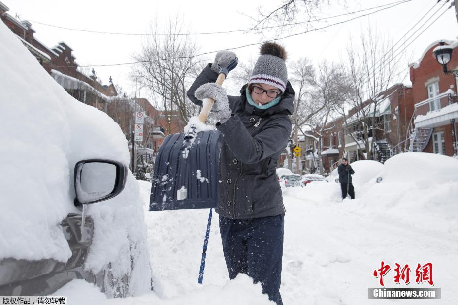 當(dāng)?shù)貢r間2016年3月15日,加拿大蒙特利爾,當(dāng)?shù)卦獗╋L(fēng)雪襲擊,部分地區(qū)降雪超過60厘米。停在路邊的私家車被積雪覆蓋,民眾用各種工具在雪堆里“找汽車”。