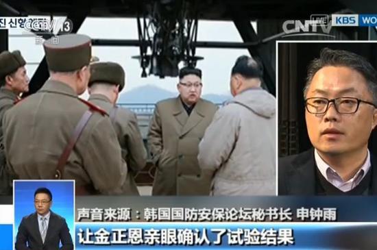 韓國國防安保論壇秘書長 申鐘雨:(朝鮮)完成了把發(fā)動機裝載到洲際彈道導彈上的最后一個階段,即裝載輔助發(fā)動機后,讓金正恩親眼確認了試驗結果。