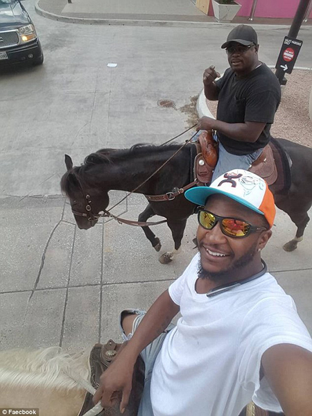 視頻中,名為伍迪·菲爾茨(Woody Fields)的男子和他的一位朋友騎著馬,大搖大擺地走進休斯頓市一家沃爾瑪超市,自由地在貨道間穿梭,引來數人圍觀。
