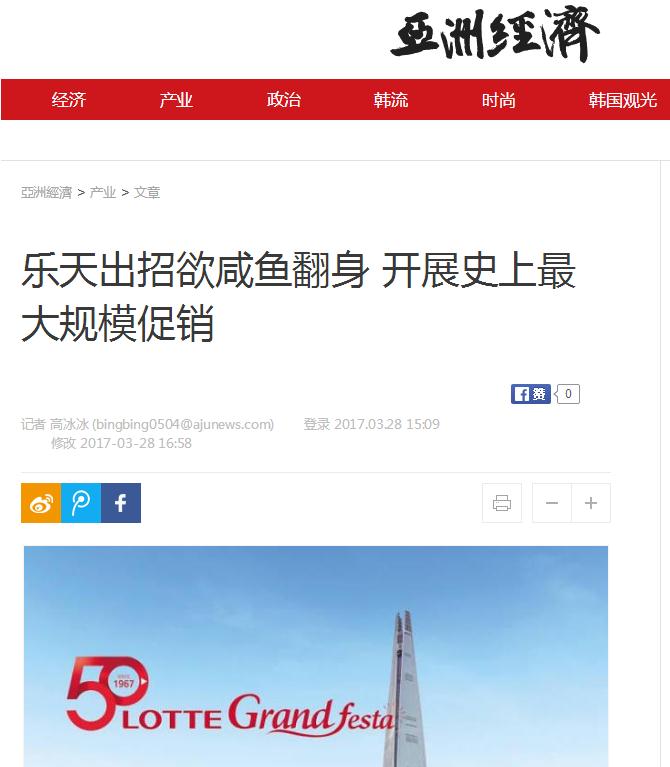 韓國(guó)《亞洲經(jīng)濟(jì)》28日對(duì)此分析稱(chēng),韓國(guó)內(nèi)需不振,中國(guó)“反制薩德”,樂(lè)天集團(tuán)在四面楚歌的情況下,試圖通過(guò)大型促銷(xiāo)活動(dòng)尋找突破口。