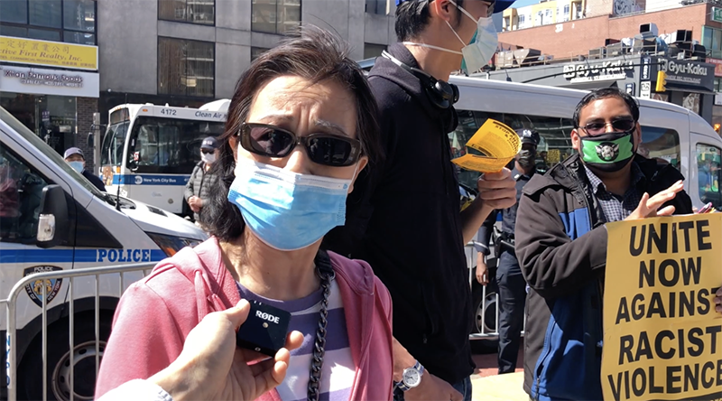 不到下午1時,大量示威者已經聚集在紐約市著名華人社區法拉盛的圖書館前,手舉“反對歧視亞裔”“團結起來反抗種族暴力”等標牌,表達不滿。其中還有很多帶著孩子和老人一起前來的人。