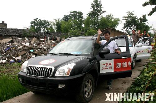 6月6日,江淮抗震救災前線指揮部派往四川地震災區新聞中心的三位志愿者車手,駕駛江淮越野車送媒體記者前往地震重災區安縣鄉村途中。 “伸出你的手,初次相識已是朋友”。不為名,不圖利,只愿真情常駐人間;不怕苦,不畏難,只望陽光溫暖心田。將我們最美好的祝愿和最真摯的感謝都譜寫成歌,送給無私的志愿者。如果你也躍躍欲試,就看看這些抗震救災中的志愿者的故事,他們是快樂的,這是他們無怨無悔的選擇。 新華社記者 陳海寧 攝