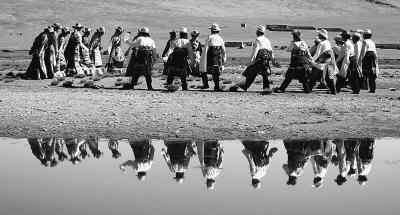 好客的西藏人常常把我請(qǐng)到他們家里,讓我看一看他們現(xiàn)在的富足。我能感覺(jué)到,主人的熱情是由衷的,幸福的感覺(jué)發(fā)自肺腑。我用手中的相機(jī)記錄下了他們發(fā)自內(nèi)心的歡樂(lè)。這幅載歌載舞的照片就是其中的一張。