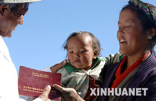 資料圖片:拉薩曲水縣達嘎鄉其奴村的拉珍(右)帶著孩子到村衛生所看。2007年11月26日攝)。新華社記者 格桑達瓦 攝