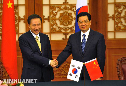 李明博表示,對華關(guān)系是韓國外交軸心之一。韓方高度重視進一步深化兩國關(guān)系,此次雙方同意將韓中全面合作伙伴關(guān)系提升為戰(zhàn)略合作伙伴關(guān)系,將為兩國關(guān)系發(fā)展開辟廣闊前景。韓方希望保持兩國高層互訪,加強各層次磋商,密切雙方在國際和地區(qū)問題上的協(xié)調(diào)合作,擴大人員交往,特別是青少年交流,積極深化和拓展雙方在投資、金融、通信、能源、環(huán)保、科技、新能源開發(fā)利用等領(lǐng)域的互利合作,歡迎中國企業(yè)赴韓投資,支持韓方企業(yè)來華發(fā)展,促進雙方中小企業(yè)間的合作。李明博強調(diào),韓方愿成為中國真正的伙伴,與中方共同努力,推進兩國關(guān)系向更深、更廣、內(nèi)涵日趨豐富的方向發(fā)展,并為促進東北亞地區(qū)的和平穩(wěn)定作出積極貢獻。