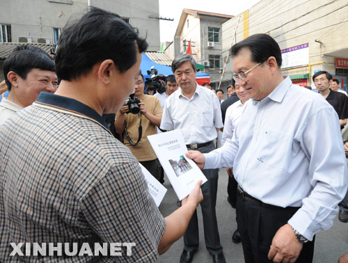 這是6月2日,李長春在平武縣南壩鎮察看災情,慰問災區干部群眾和救援人員,指導抗震救災工作。 新華社記者 李學仁 攝