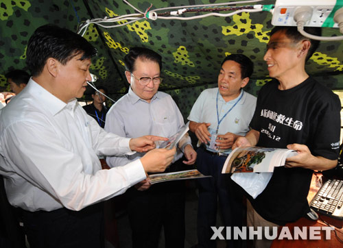 受胡錦濤總書記委托,中共中央政治局常委李長春6月1日和2日到四川地震災區察看災情,看望慰問奮戰在抗震救災第一線的新聞工作者。
