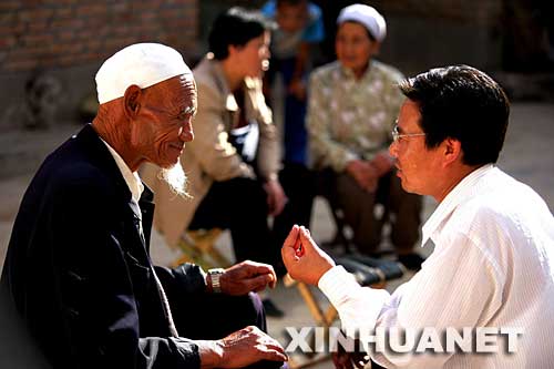 2005年8月12日,寧夏回族自治區西吉縣吉強鎮干部在一村民家調解鄰里糾紛。吉強鎮在開展保持共產黨員先進性教育活動中,努力構建社會主義和諧社會。鎮黨委針對鄰里、婚姻、征地拆遷、民族宗教等易發矛盾糾紛的重點,做好排查摸底,堅持把矛盾和問題解決在萌芽狀態,化解在村鎮,真正做到“小事不出村、大事不出鎮、矛盾不上交”。 新華社發(資料圖片)