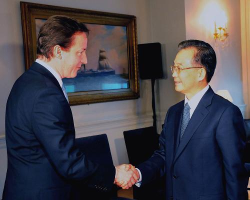 2月1日,中國國務院總理溫家寶在倫敦會見英國保守黨領袖卡梅倫。新華社記者 馬建國 攝