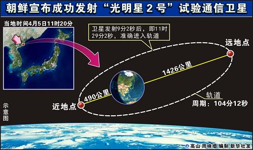 圖表:朝鮮宣布成功發射“光明星2號”試驗通信衛星 新華社發