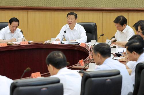 7月21日,中共中央政治局常委、中央書記處書記、國家副主席、中央深入學習實踐科學發展觀活動領導小組組長習近平,主持召開中央深入學習實踐科學發展觀活動領導小組第九次會議并講話。新華社記者 馬占成 攝