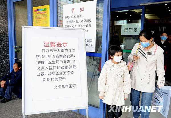 這是10月31日拍攝的北京兒童醫院門診樓前的提示牌。新華社記者饒愛民攝