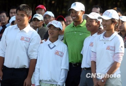 11月4日,世界頭號選手“老虎”伍茲在上海為將于明天開賽的2009年世界高爾夫錦標賽-匯豐冠軍賽積極備戰(zhàn)。期間,伍茲還向小球員傳授球技,并和他們合影留念。 中新社發(fā) 湯彥俊 攝