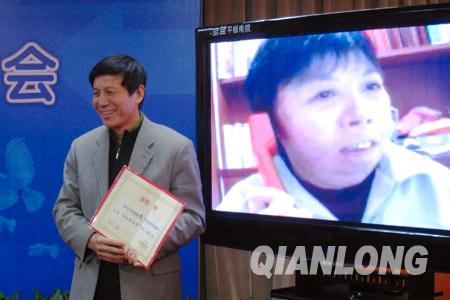 北京市網管辦常務副主任佟力強通過網絡視頻為劉煥榮頒發聘書