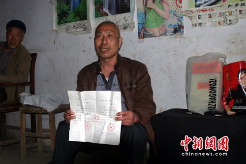 趙作海展示釋放證明書(shū)。