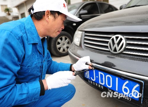 資料圖:2010年1月5日,浙江省玉環(huán)縣舉行公務(wù)車輛亮牌管理儀式。為嚴(yán)格執(zhí)行公務(wù)車輛使用管理規(guī)定,進(jìn)一步加強公務(wù)用車使用情況的監(jiān)督檢查,該縣定制了1000付統(tǒng)一的牌照框,對全縣128個鄉(xiāng)鎮(zhèn)、街道及部門單位的800多輛公務(wù)用車實行亮牌管理。 中新社發(fā) 林楚炳 攝