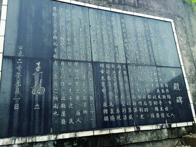 在建勛寺內(nèi)的“甘卓將軍殿碑”。2009年,王林牽頭花費(fèi)1.4億修建“建勛寺”。 圖/記者 陳威
