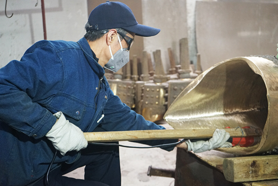 劉佑年在車間打磨編鐘。中國(guó)網(wǎng)信網(wǎng) 馬頔 攝