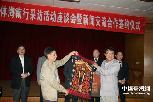 臺灣《民意時報》社長陳忠芳也介紹了臺灣一些媒體的情況,兩岸記者還就媒體交流問題進行了熱烈的探討。今年6、7月份曾被派往臺灣駐點的中新社記者王辛莉發(fā)言說,通過這兩天與臺灣媒體朋友的交流與交談,進一步感覺兩岸記者通過相互接觸才能加深了解,臺灣記者敬業(yè)精神比較強,希望將來能有更多向臺灣的媒體前輩學習的機會,歡迎大家常來走走,海南媒體也希望有機會實現(xiàn)去臺灣的愿望。(李杰)