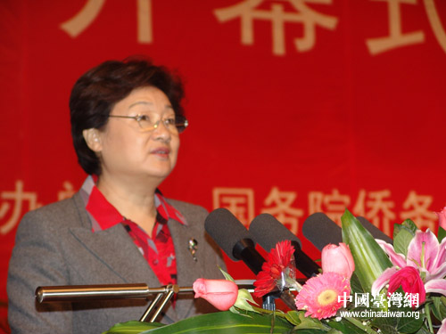 李海峰說,兩岸統(tǒng)一是中華民族走向偉大復(fù)興的歷史必然,是包括臺灣同胞在內(nèi)的海內(nèi)外中華兒女的共同心愿。她希望與會者更加堅定支持中國政府的立場和主張,共同維護(hù)一個中國原則;更加牢牢地把握和平發(fā)展主題,以各種方式推動兩岸人員往來,促進(jìn)兩岸經(jīng)濟、科技、文化等領(lǐng)域的合作交流,融洽感情、深化合作,攜手維護(hù)好、建設(shè)好我們的共同家園;更加努力地推動和諧僑社建設(shè),團結(jié)一切可以團結(jié)的力量,在一個中國的旗幟下,更加緊密地團結(jié)起來,反對和遏制“臺獨”分裂活動,共同維護(hù)中華民族的根本利益;更加積極地宣傳中國政府的主張,海外僑胞根據(jù)各國的具體情況,以各種方式向住在國政府、議會和主流媒體表達(dá)廣大僑胞“反獨促統(tǒng)”的堅強意志,揭露“臺獨”分裂活動對亞太、對世界和平的危害,介紹大陸和臺灣同屬一個中國的歷史事實,宣傳中國政府對臺灣問題的方針、政策和主張,通過民間促進(jìn)官方,共同營造遏制“臺獨”的有利國際環(huán)境。
