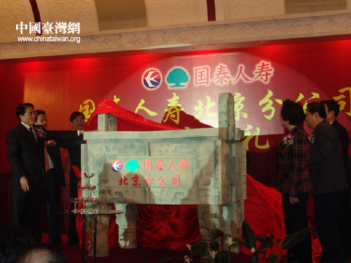 臺(tái)盟中央主席林文漪等為國(guó)泰人壽保險(xiǎn)有限責(zé)任公司北京分公司揭幕。(攝影:邵磌)
