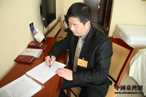 上午10時30分,新政協委員駱沙鳴終于將18份提案全部完成,呈交大會提案組。至此,他已是臺盟政協委員在本次會議中個人提案數量最多者。完成了參會的所有準備,駱沙鳴才抽出時間和記者聊了起來。提到當選第十一屆全國政協委員,仍然能夠感受到駱沙鳴的激動。他說:“能夠步入全國參政議政的最高殿堂,為國家建設建言獻策,真的非常榮幸,但是也感受到了肩上沉甸甸的責任。身為全國政協的臺籍委員,更應當情系兩岸鄉親,高瞻遠矚,胸懷兩岸未來。”