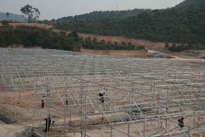 11日,筆者在該園核心區看到,5000平方米的標準玻璃溫室已經基本完成鋼架部分,計劃在5月份建成投入使用。建成后漳浦臺灣農民創業園標準玻璃溫室將達到5萬平方米。目前已有臺灣專業培育蝴蝶蘭的鉅寶蘭園等農戶等著入駐。 (邱耀斌 攝影報道)