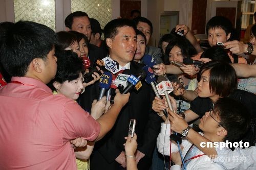 6月23日,臺北市長郝龍斌在上海接受眾媒體采訪,他表示希望臺北和上海兩城市創造雙贏。 中新社發 潘索菲 攝