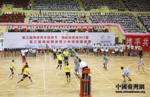 中國臺灣網(wǎng)7月22日消息 由中華全國青年聯(lián)合會、福建省政府共同主辦的第三屆兩岸青年聯(lián)歡節(jié)海峽西岸行活動之一——第三屆海峽兩岸青少年排球邀請賽19日在漳州華陽體育館開幕。全國青聯(lián)主席楊岳,福建省委常委、宣傳部長唐國忠出席開幕式。