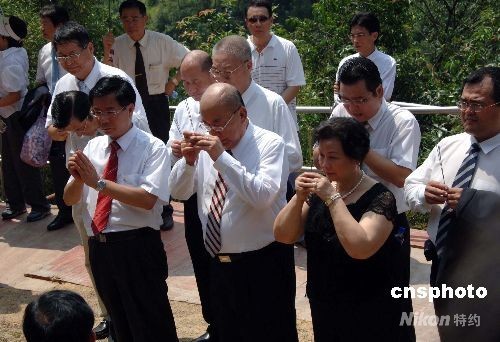 八月的龍巖,天氣炎熱。吳伯雄卻絲毫不顯疲意。參觀思賢小學后,他又沿著山路拾級而上,來到吳氏祖墳祭拜祖先。吳伯雄肅立于祖墳前,鞠躬、獻花、上香,雙手合十默默祈禱。