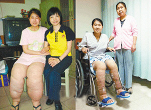中新網9月9日電 江蘇罹患淋巴水腫的象腿女孩王程,在臺北萬芳醫院經過三個月治療后康復,今天下午將搭班機返回大陸。王程穿上16年來夢昧以求的裙子走路亮相,她說,主治醫師許文憲給她新的生命。王媽媽一再跪謝說“謝謝臺灣,感激。”