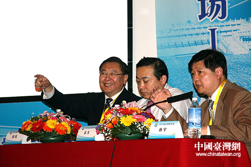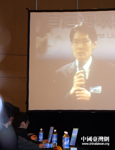兩岸學者借由視訊技術(shù)通過大屏幕進行交流(李徽 攝)