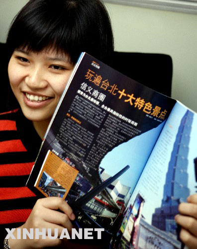 11月26日,一位女孩在介紹《暢游臺灣》雜志。 近日,《暢游臺灣》雜志在上海面世。該雜志深入介紹了臺灣的自然風光、歷史人文、時尚消費、生活模式等。《暢游臺灣》雜志由國臺辦主辦,臺灣旅奇國際有限公司經營、發行。 新華社記者張明攝