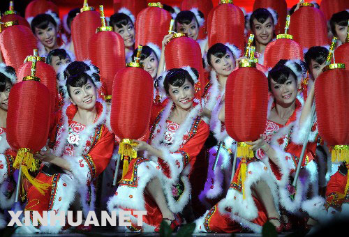 11月26日,廈門小白鷺民間舞團和廈門藝術學校的演員在表演舞蹈《開門紅》。當日,首屆海峽兩岸(廈門)文化產業博覽交易會開幕式文藝晚會在廈門人民會堂舉行,來自海峽兩岸的藝術家同臺演出,共敘文緣。 新華社記者 姜克紅 攝