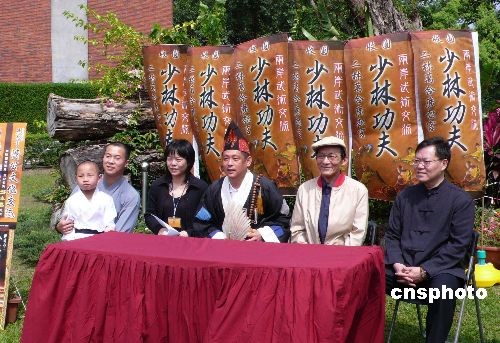 在臺北劍潭青年活動中心舉行的記者會上,北京元鴻少林功夫團現(xiàn)場表演了鐵頭功、童子功、飛針等中國傳統(tǒng)武術,贏得陣陣喝彩。