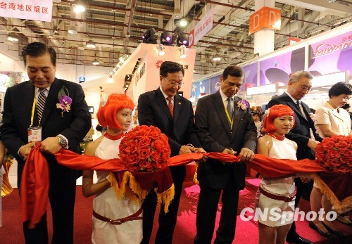 9月8日,出席第13屆中國國際投資貿易洽談會臺灣精品館開館儀式的中國商務部副部長姜增偉、海協會副會長張銘清、臺北世界貿易中心董事長王志剛等嘉賓為該館開館剪彩。當日,第13屆中國國際投資貿易洽談會在廈門國際會展中心開幕。 中新社發 劉可耕 攝