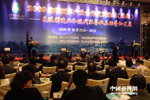 10月23日上午,以“制造業和服務業互動疊加發展”為中心議題的“2009海峽兩岸產業合作發展論壇(昆山)”啟幕。(中國臺灣網  鐘寶華  攝)