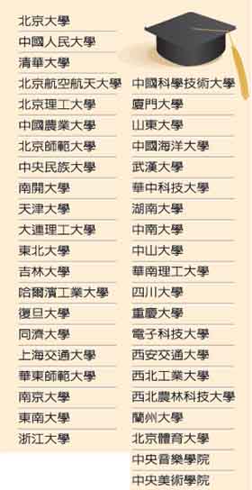 臺灣擬承認學歷的41所大陸高校。 來源:臺灣《聯合報》