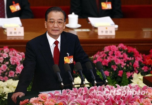 3月5日,第十一屆全國人民代表大會第三次會議在北京召開。溫家寶作政府工作報告。 中新社發 杜洋 攝