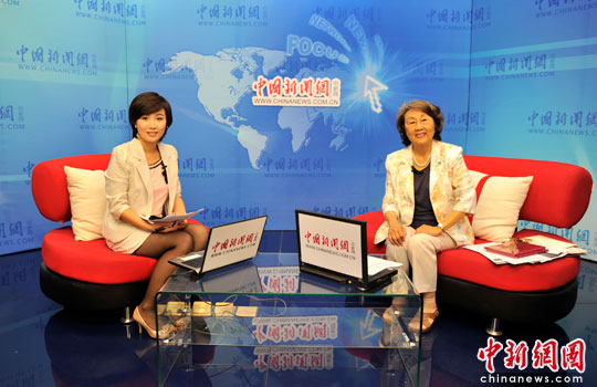 周恩來總理侄女、原中國新聞社副社長周秉德(圖右)6月3日下午做客中新網。(金碩/攝)