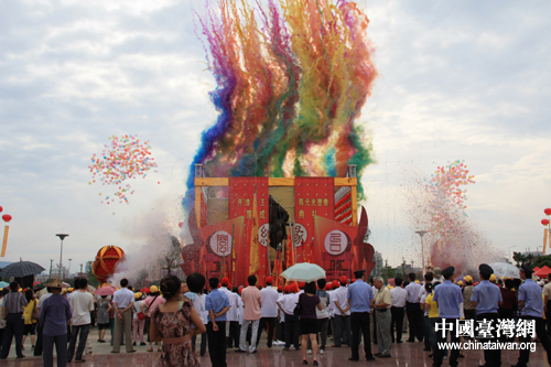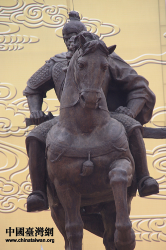 開漳圣王陳元光塑像今天下午在漳州市人民廣場落成。(中國臺灣網 肖燕 攝)
