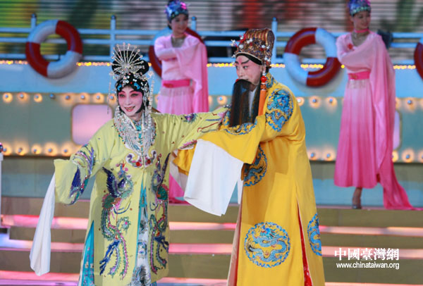 梅葆玖、李寶春兩位海峽兩岸的藝術(shù)家在第二屆海峽論壇晚會上演繹京劇《長生殿》選段。(中國臺灣網(wǎng) 鐘寶華 攝)