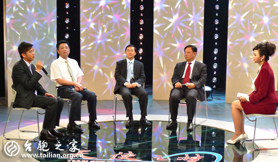 翁林宇(左一)在福建東南衛視大型訪談節目《天使之夢》中。 徐波/攝影