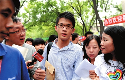 昨天上午,李戡無疑是北大今年的新生中最被關(guān)注的一個。數(shù)十名記者把李戡圍得寸步難行,對于這樣的架勢,李戡表示已經(jīng)在意料之中,但是他希望從今天開始自己的生活可以恢復(fù)平靜。