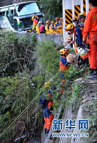 10月24日,救援人員在蘇花公路附近搜救。 新華社發