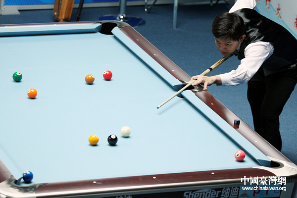 郭柏成瞄準“黑八”,只要攻入,即贏得比賽。(中國臺灣網 鐘寶華 攝)
