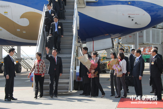 20日中午,由海協(xié)會會長陳云林率領(lǐng)的海協(xié)會協(xié)商代表團(tuán)乘坐國航CA185次航班順利抵達(dá)臺北桃園機(jī)場,參加將于21日上午舉行的兩會領(lǐng)導(dǎo)人第六次會談。 (中國臺灣網(wǎng) 鐘寶華 攝)